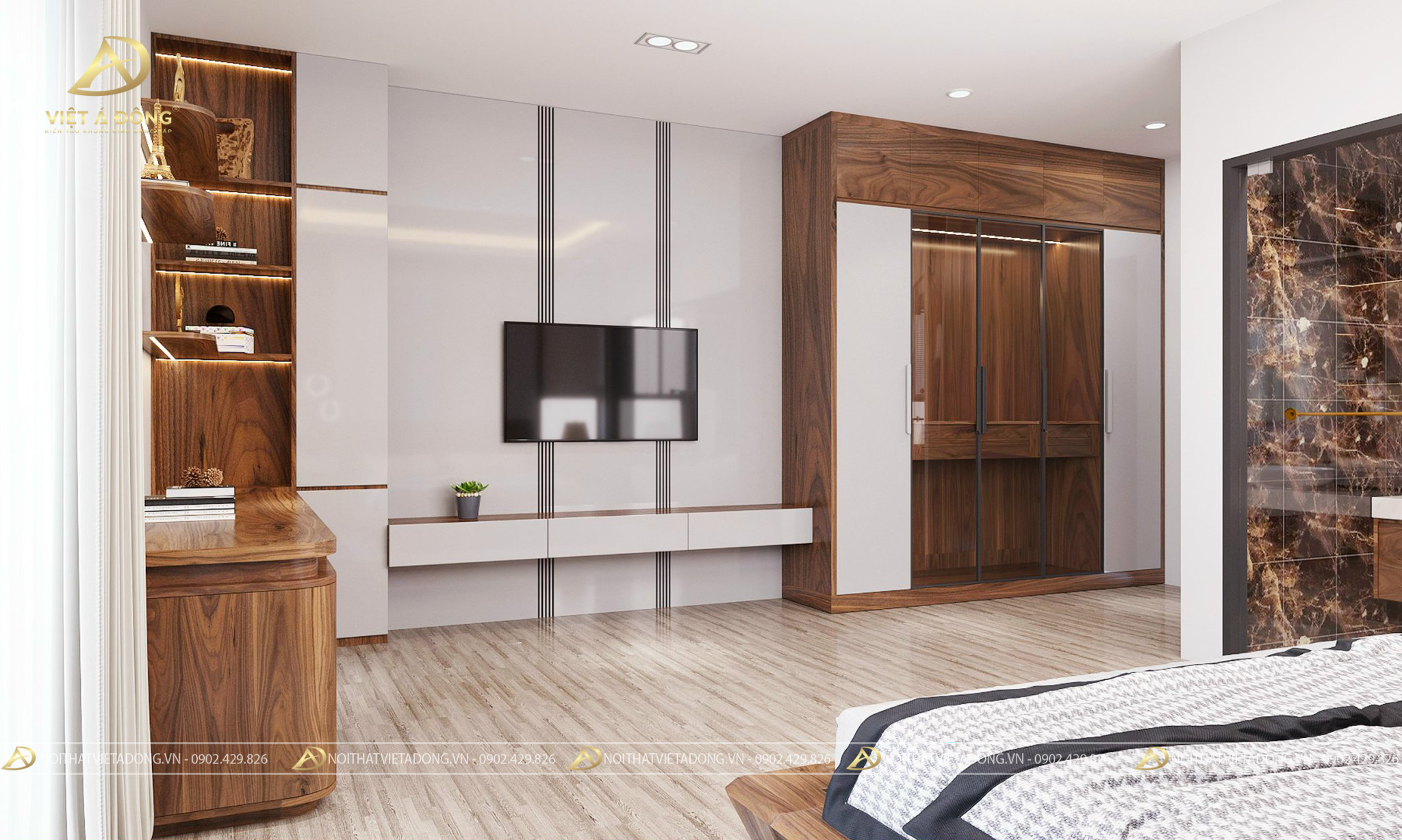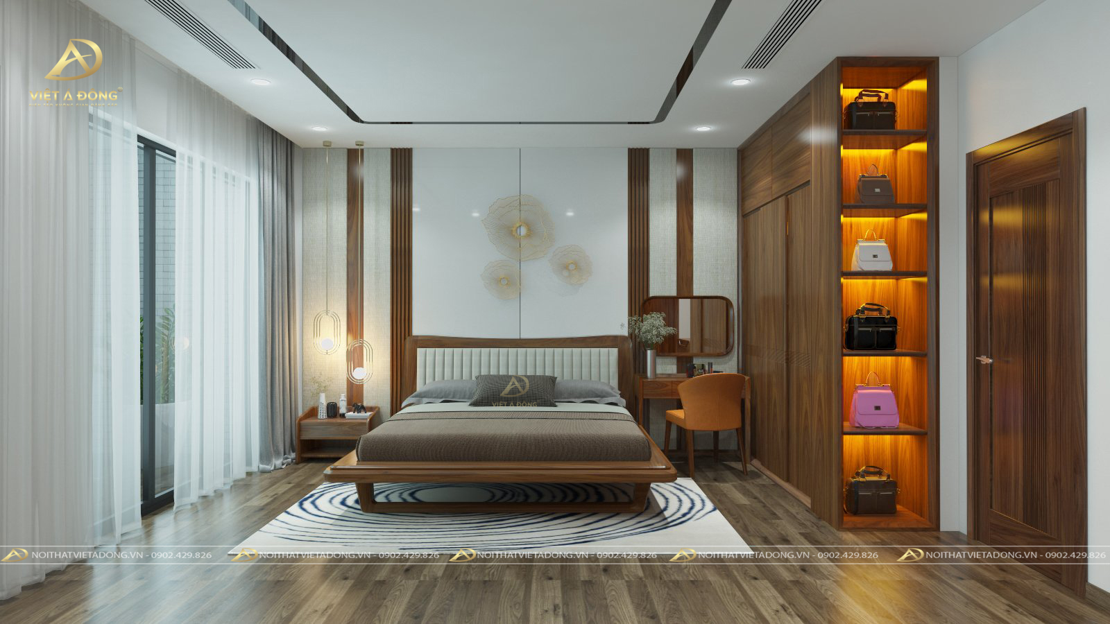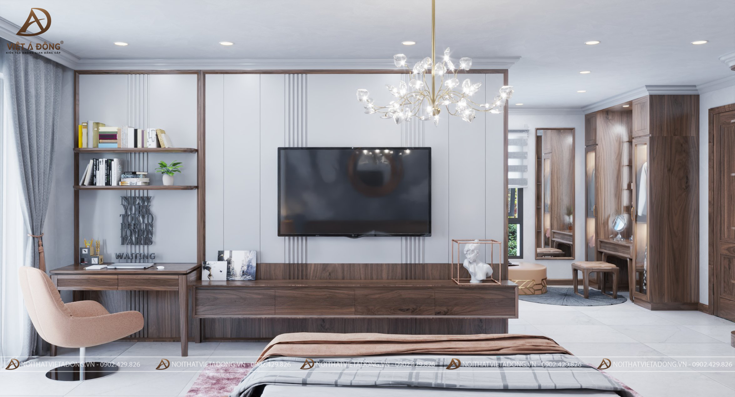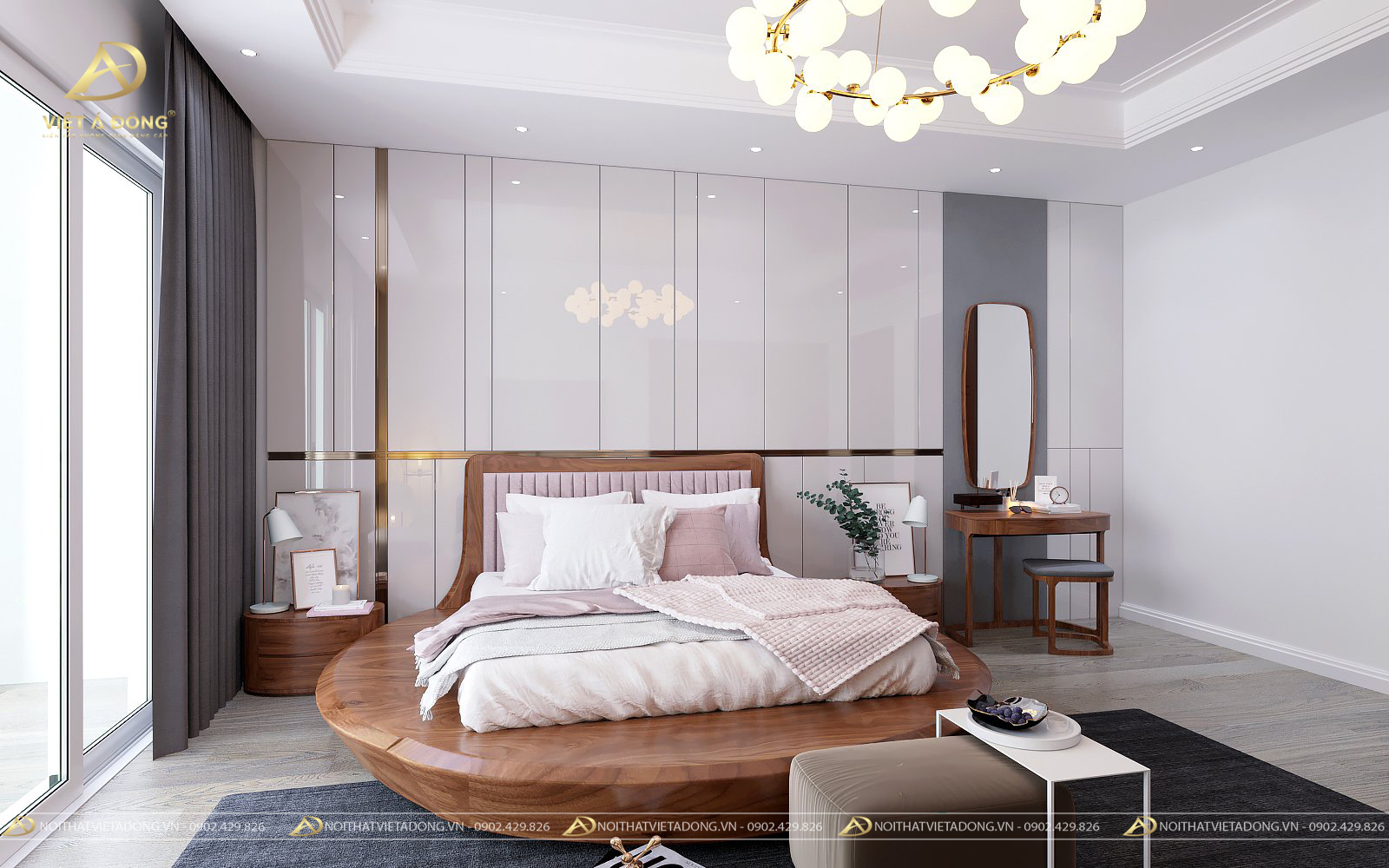 Phòng ngủ master là không gian phòng ngủ chính trong ngôi nhà. Được ưu tiền về vị trí view đẹp và diện tích rộng hơn các phòng khác. Nội thất phòng ngủ master được thiết kế đầy đủ công năng, tiện ích cũng như thẩm mỹ. Mời quý vị cùng tham khảo mẫu phòng ngủ master mà Việt Á Đông thiết kế