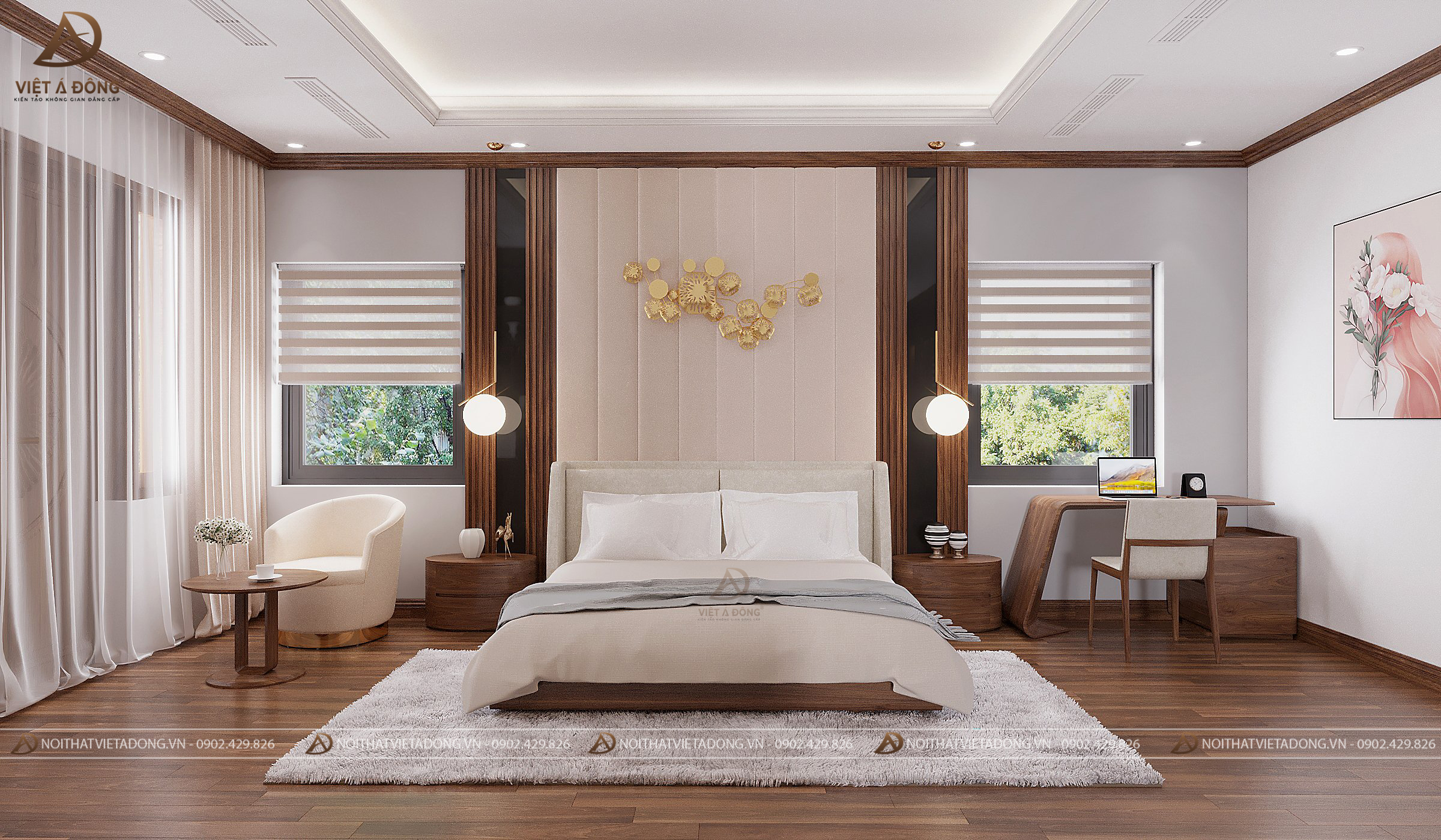 Dưới đây là những mẫu thiết kế nội thất phòng ngủ biêt thự đẹp mà Việt Á Đông thiết kế. Mời quý khách cùng tham khảo